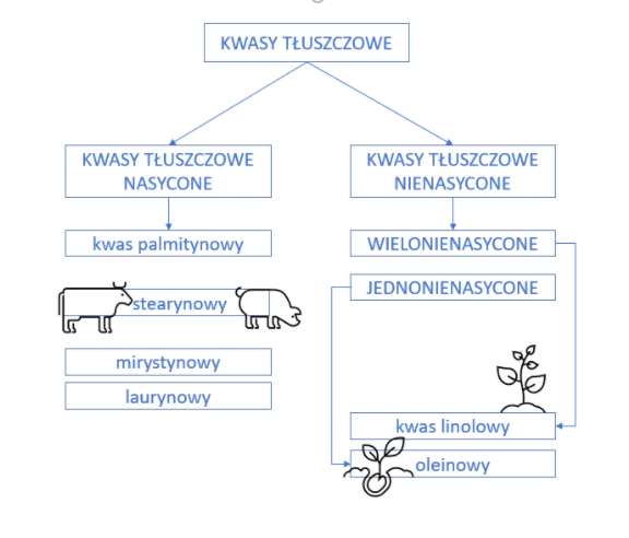 Rozróżnijmy też rodzaje tłuszczy ze szczególnym uwzględnieniem kwasu linolowego i oleinowego (tłuszcze roślinne) oraz stearynowego (zwierzęce) – poniżej obrazek, który ułatwi zapamiętanie
