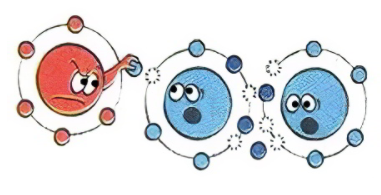 RFT (lub ROS, od ang. reactive oxygen species) to chemicznie reaktywne cząsteczki powstałe w wyniku redukcji tlenu cząsteczkowego. Inaczej mówiąc, to takie cząsteczki tlenu, które z pewnych przyczyn straciły elektron na swojej ostatniej powłoce, co sprawiło, że stały się niestabilne. I takie wybrakowane cząsteczki próbują uzupełnić sobie brakujący elektron rabując go innym cząsteczkom, co oczywiście powoduje uszkodzenie tych ostatnich, a co można zilustrować takim oto uroczym obrazkiem: